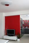 Minimalismus ve futuristickém podáníŽe nemáte rádi paneláky, protože jsou strašně tuctové? Rádi vám ukážeme, že i panelákový byt lze pojmout tak netradičně, že o tuctovosti nemůže být řeč! A začneme rovnou od podlahy… Ve snaze opticky zvětšit prostor na maximum jsme nechali upravit podlahu bílou litou stěrkou s bílým dekorativním nátěrem. Bílou jsme použili také pro řešení stěn, kam jsme umístili také výřezy moderních futuristických tapet Larse Contzena. Bílou barvu jsme v tomto interiéru doplnili červenými a černými akcenty jak na nábytku, tak i v doplňcích. Působivou dominantou celé místnosti jsou dvě svítidla Pipe, která lze libovolně ohýbat do požadovaných tvarů. Hlavní pojetí interiéru směřovalo k čistým liniím, vzdušnosti a určité extravaganci. Jak se celá proměna klasického panelákového bytu v minimalistický futurismus zdařila, se můžete podívat zde.